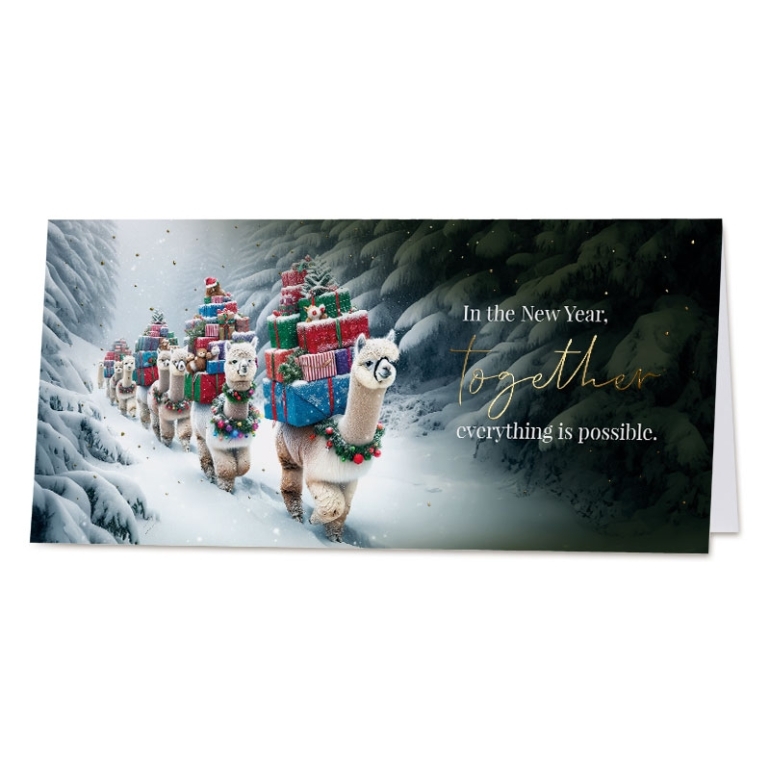 Zakelijke nieuwjaarskaart met lama's