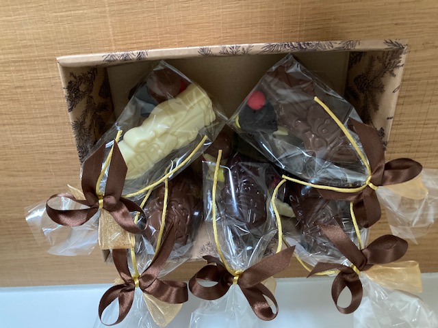 | 2025-009 | Sint & Piet ca.12cm, holle figuren (2ex), praliné figuur, speculoos 9cm (3ex), caraques (2ex) | € 12,15 |