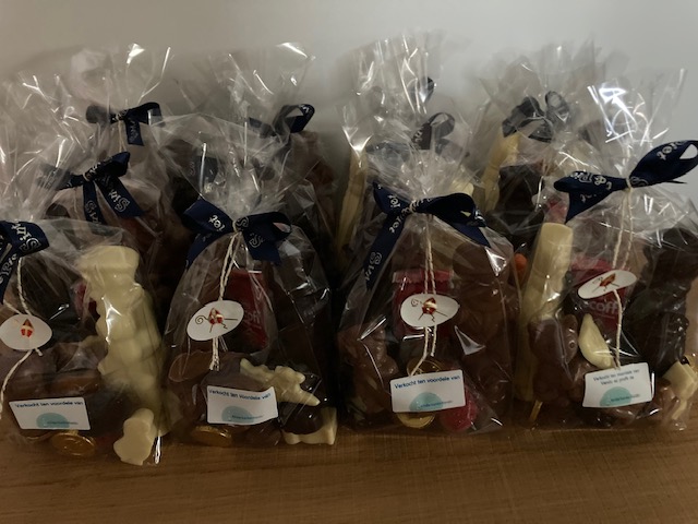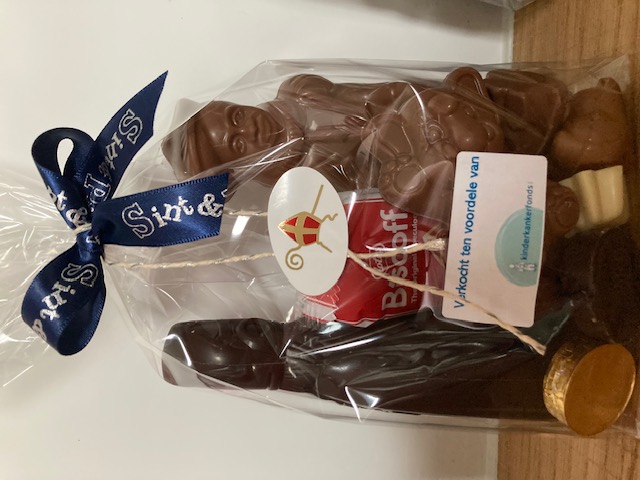 De Sint en chocolade ten voordele van kinderkankerfonds en/of Samen tegen armoede.